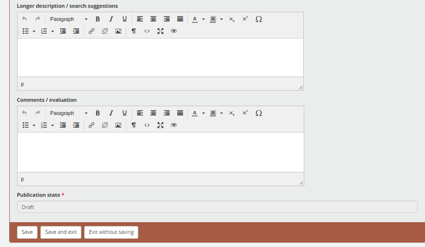 • comments /evaluation: could include comments on the type of contents, their quality, their possible use.